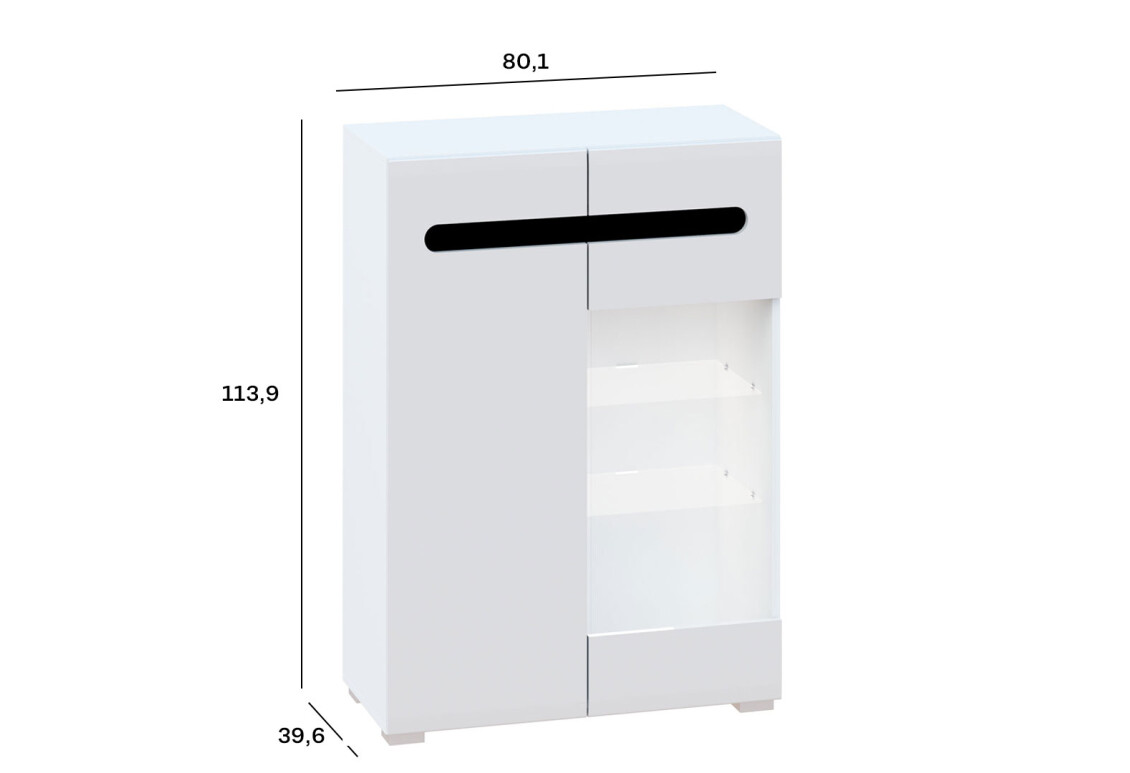 Комод Бянко 2-дверний з вітриною 80 см Білий з чорною вставкою