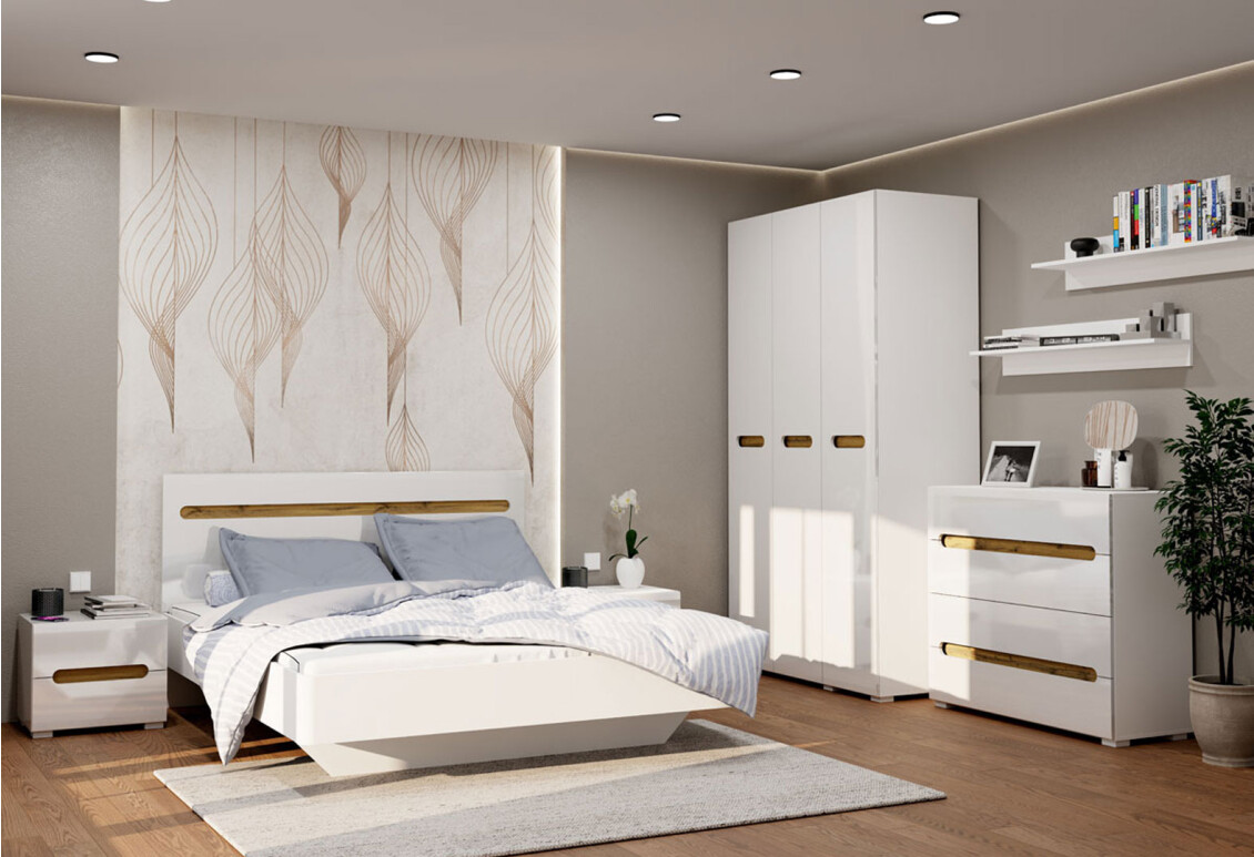 Комод Світ Меблів Бянко з 4 шухлядами – це стильний та функціональний елемент вашого інтер'єру, який ідеально підійде для будь-якої кімнати. Його сучасний дизайн у білому кольорі з вставкою дуба аппалачі надає йому елегантності та вишуканості. Завдяки своїм компактним розмірам (ширина 105 см, висота 92,5 см, глибина 40,6 см) комод легко впишеться в будь-який простір, забезпечуючи при цьому достатньо місця для зберігання. Чотири шухляди дозволяють організувати ваші речі так, щоб вони завжди були під рукою. Виготовлений з якісних матеріалів, таких як плита та глянцева МДФ, цей комод не лише приваблює зовнішнім виглядом, але й забезпечує надійність та довговічність. Доступні модифікації включають варіанти з вставкою чорного кольору, що дозволяє підібрати ідеальний варіант під ваш інтер'єр.