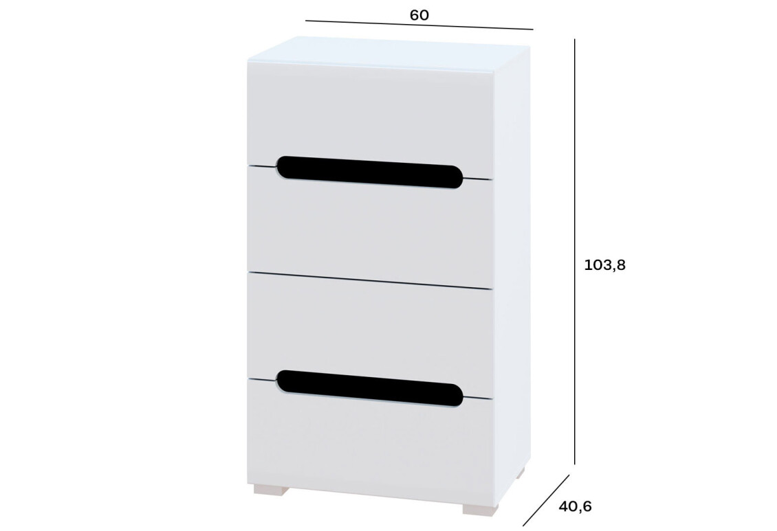 Комод Бянко з 4 шухлядами 60 см Білий з чорною вставкою