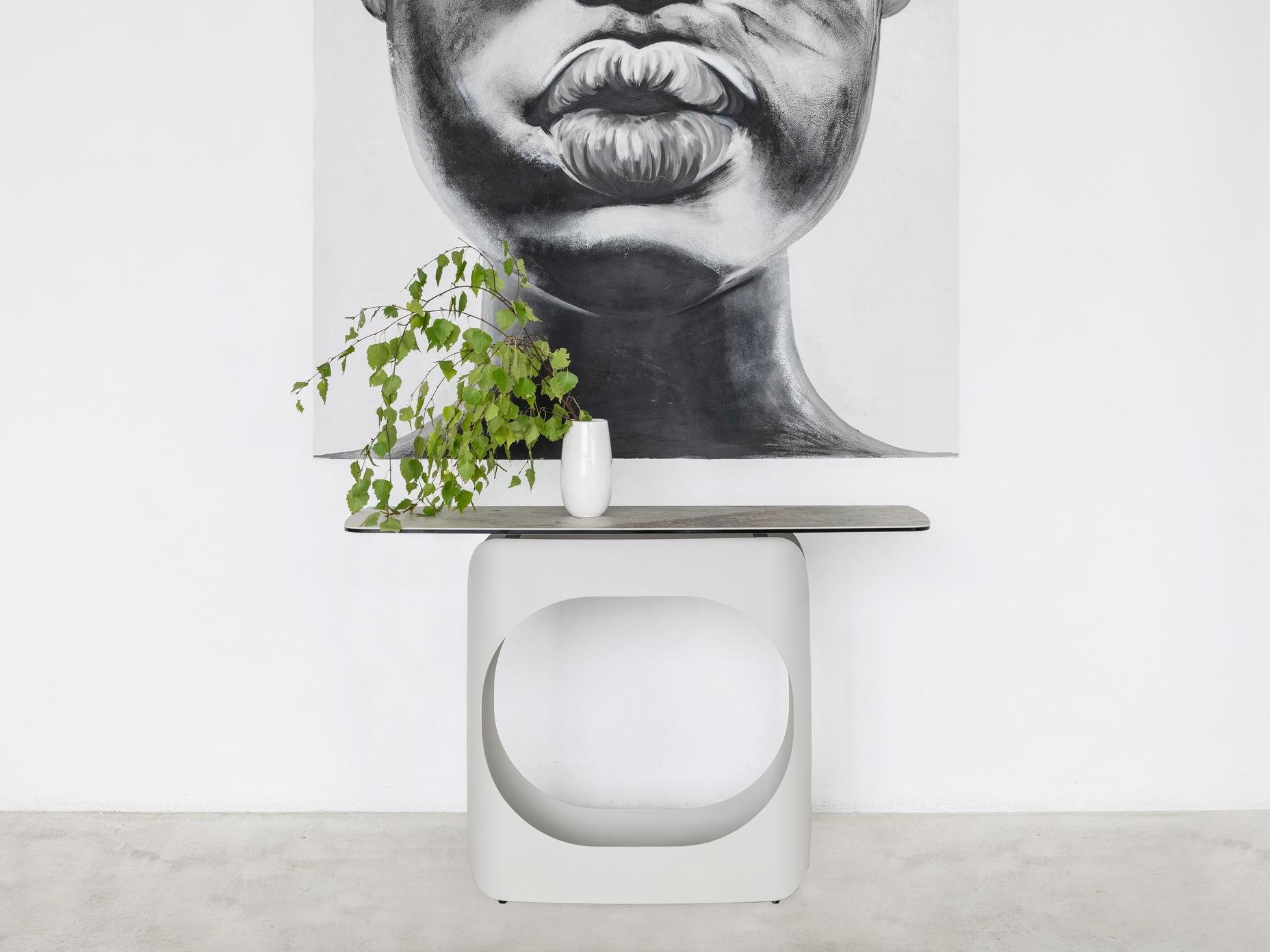 Консоль "Арно" сілвер рівер + айворі — це витончене поєднання стилю та функціональності, яке стане стильним акцентом у вашому інтер’єрі. Стільниця з матової кераміки у відтінку сілвер рівер вражає природною текстурою, що нагадує переливи каменю, створюючи відчуття вишуканості та гармонії. Поверхня поєднана з гартованим склом, завдяки чому вона вирізняється міцністю, стійкістю до подряпин та простотою у догляді.