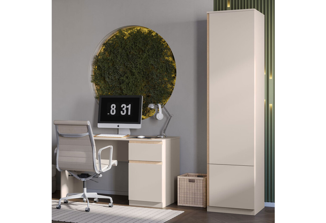 Пенал Світ Меблів Фріда з 2 дверцятами – це ідеальний вибір для тих, хто цінує поєднання сучасного дизайну та функціональності. Завдяки своїм компактним розмірам (ширина 50 см, висота 210,5 см, глибина 52 см), цей пенал легко впишеться в будь-який інтер'єр, забезпечуючи при цьому достатньо місця для зберігання речей. Виготовлений з ДСП, він відрізняється надійністю та довговічністю, а стильний колір тоффі в поєднанні з дубом сонома надає йому елегантного вигляду. Пенал стане чудовим доповненням до вашої кімнати, забезпечуючи порядок та організованість.