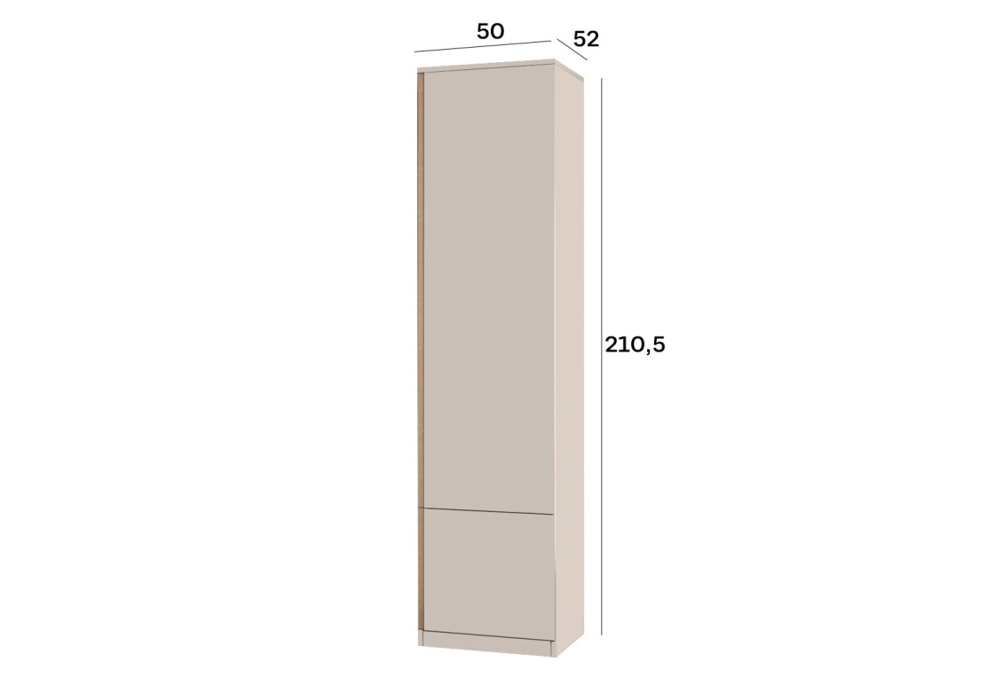 Характеристики та особливості- Розмір: ширина 50 см, висота 210,5 см, глибина 52 см - ідеальні габарити для компактного зберігання.