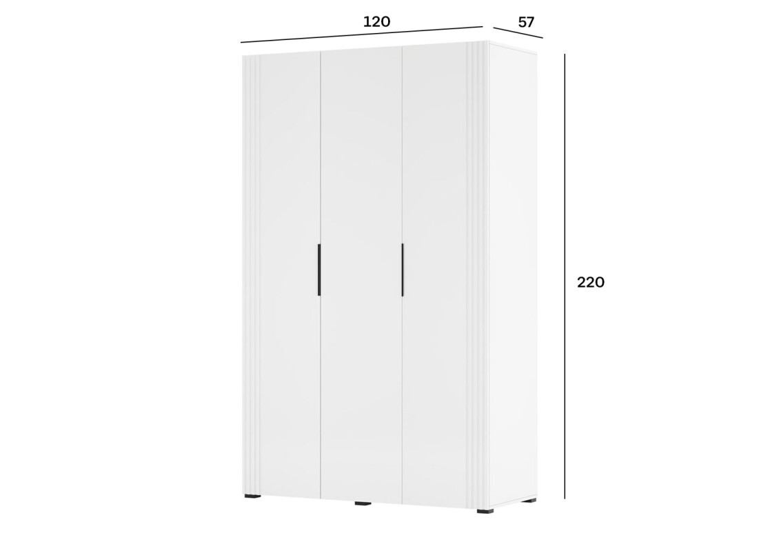 Шафа Світ Меблів Амелія 3-дверна – це ідеальне рішення для тих, хто цінує комфорт, функціональність та сучасний дизайн. З шириною 120 см та висотою 220 см, ця шафа стане вдалим доповненням до вашої спальні, забезпечуючи достатньо місця для зберігання одягу та інших речей. Її стильний білий колір підходить до будь-якого інтер'єру, а використані матеріали, такі як плита ДСП та МДФ, гарантують надійність і довговічність. Металеві ручки додають нотку сучасності та зручності у використанні. Шафа оснащена штангою та полицями, що дозволяє організувати простір максимально ефективно, зберігаючи порядок у вашій кімнаті.