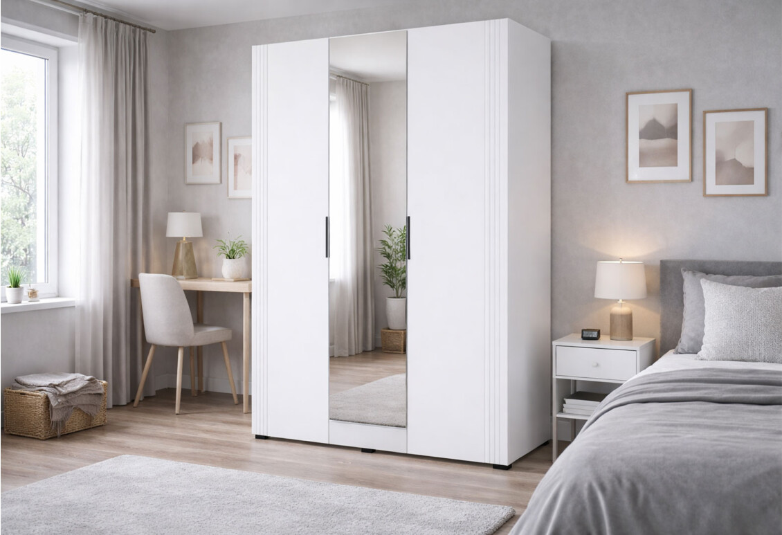 Шафа Амелія 3-дверна з дзеркалом 120 см, біла