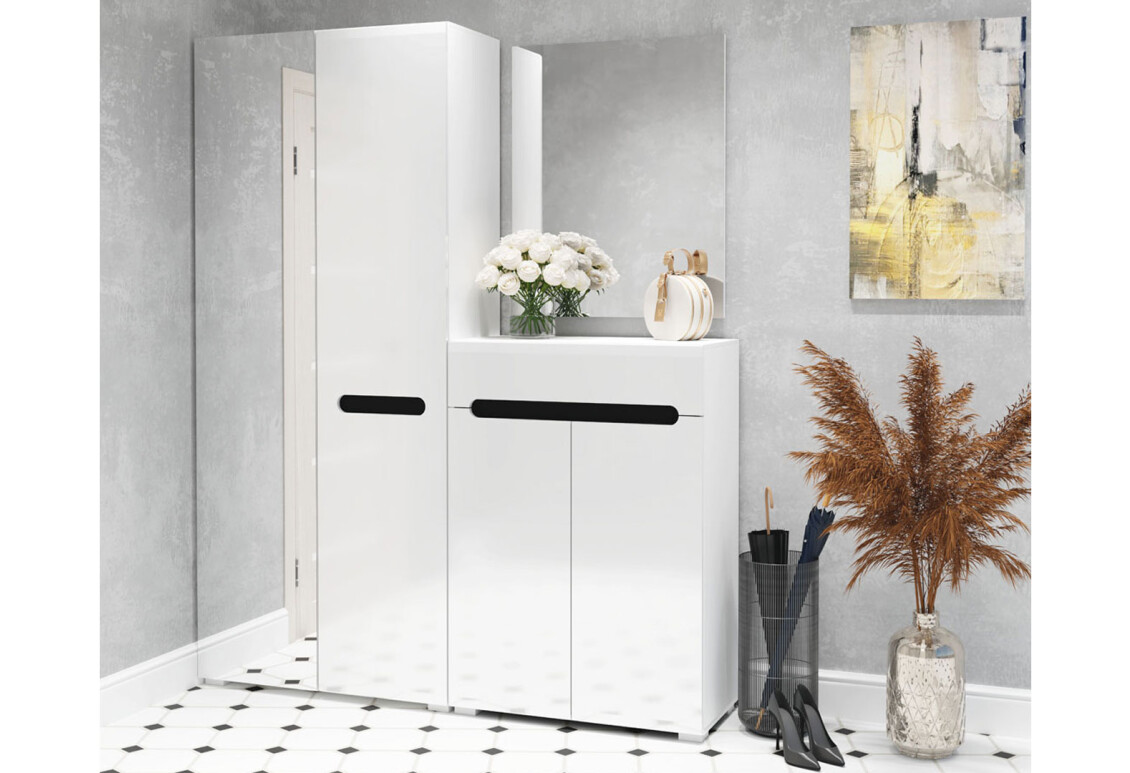 Шафа Світ Меблів Бянко 2-дверна з дзеркалом - це стильний та функціональний елемент меблів, який ідеально підходить для будь-якої сучасної оселі. Завдяки своїм компактним розмірам (ширина - 90 см, висота - 210,1 см, глибина - 39,6 см) ця шафа стане чудовим рішенням для зберігання одягу та аксесуарів, не займаючи багато простору. Виготовлена з якісних матеріалів, таких як плита ДСП, глянцева МДФ та скло, вона поєднує в собі надійність і естетику. Чудовий білий колір з чорними вставками надає шафі сучасного вигляду, а дзеркало не лише додає візуального простору, але й є зручним елементом для щоденного використання.