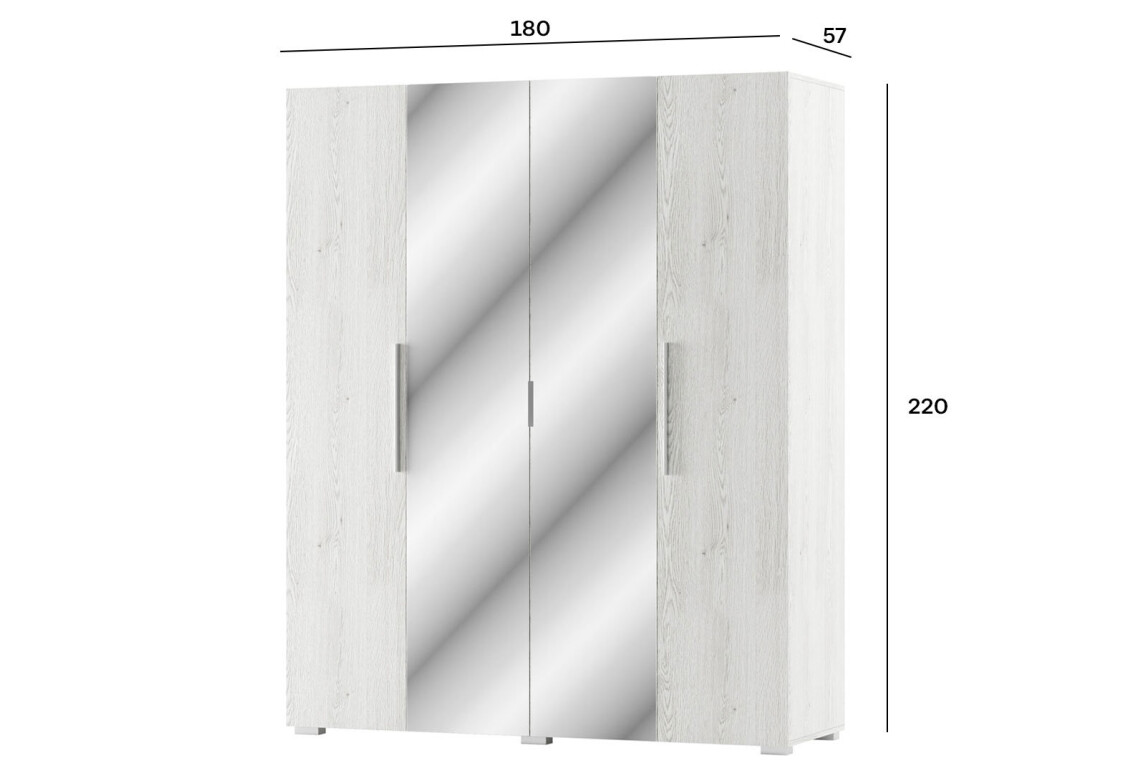 Характеристики та особливості- Розмір: ширина 180 см, висота 220 см, глибина 57 см – оптимальні габарити для зберігання великої кількості речей.