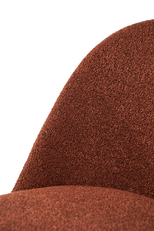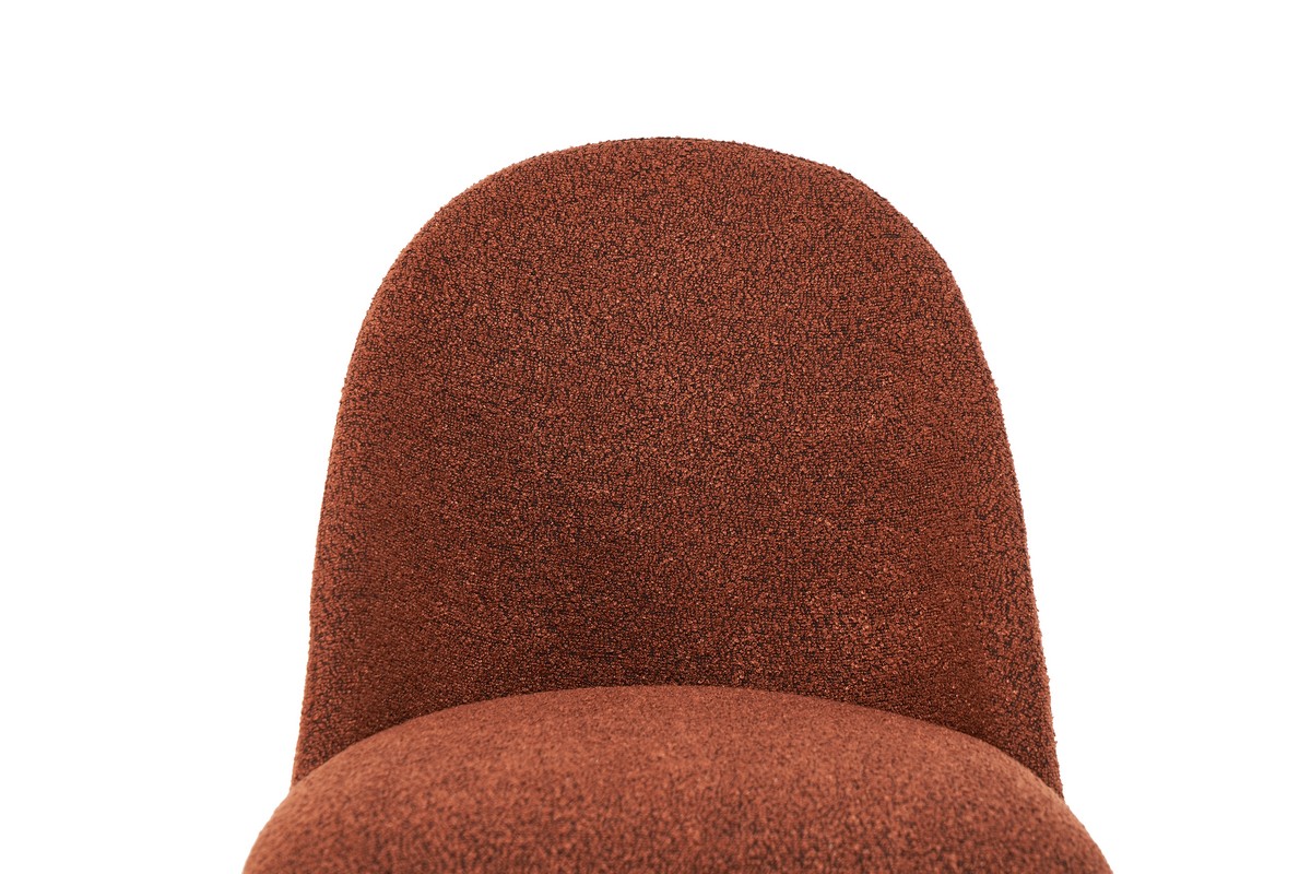 Теракотовий букле – це матеріал, який поєднує в собі тепло, природність та текстуровану поверхню, що надає стільцям затишного та стильного вигляду. Теракотовий колір, що нагадує відтінки землі та глини, додає інтер’єру тепла і комфорту, а букле забезпечує додаткову текстурну привабливість.