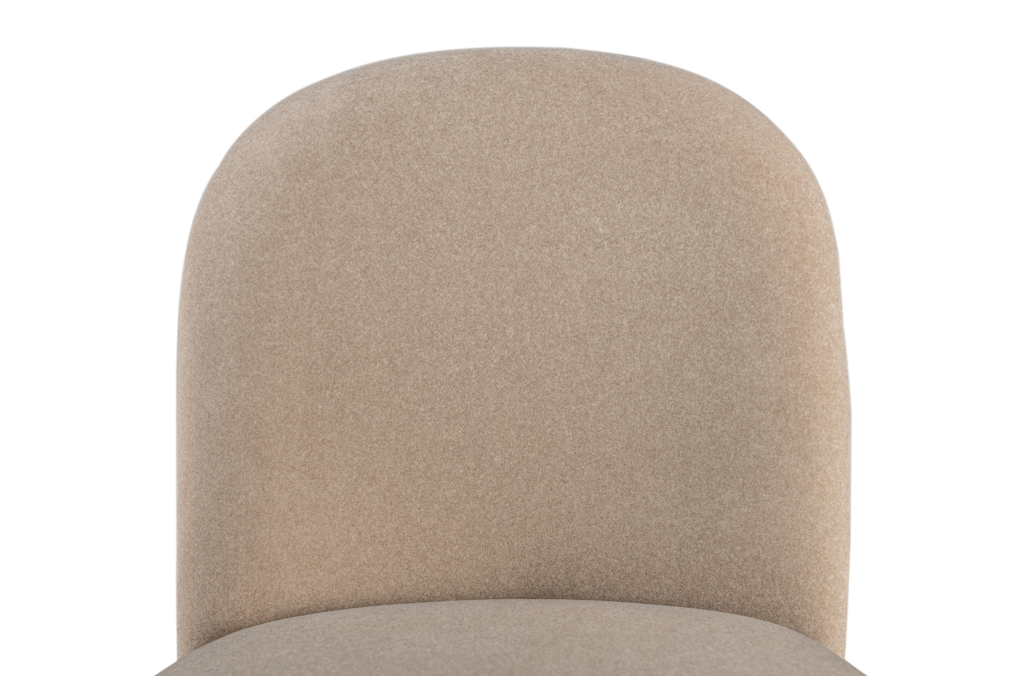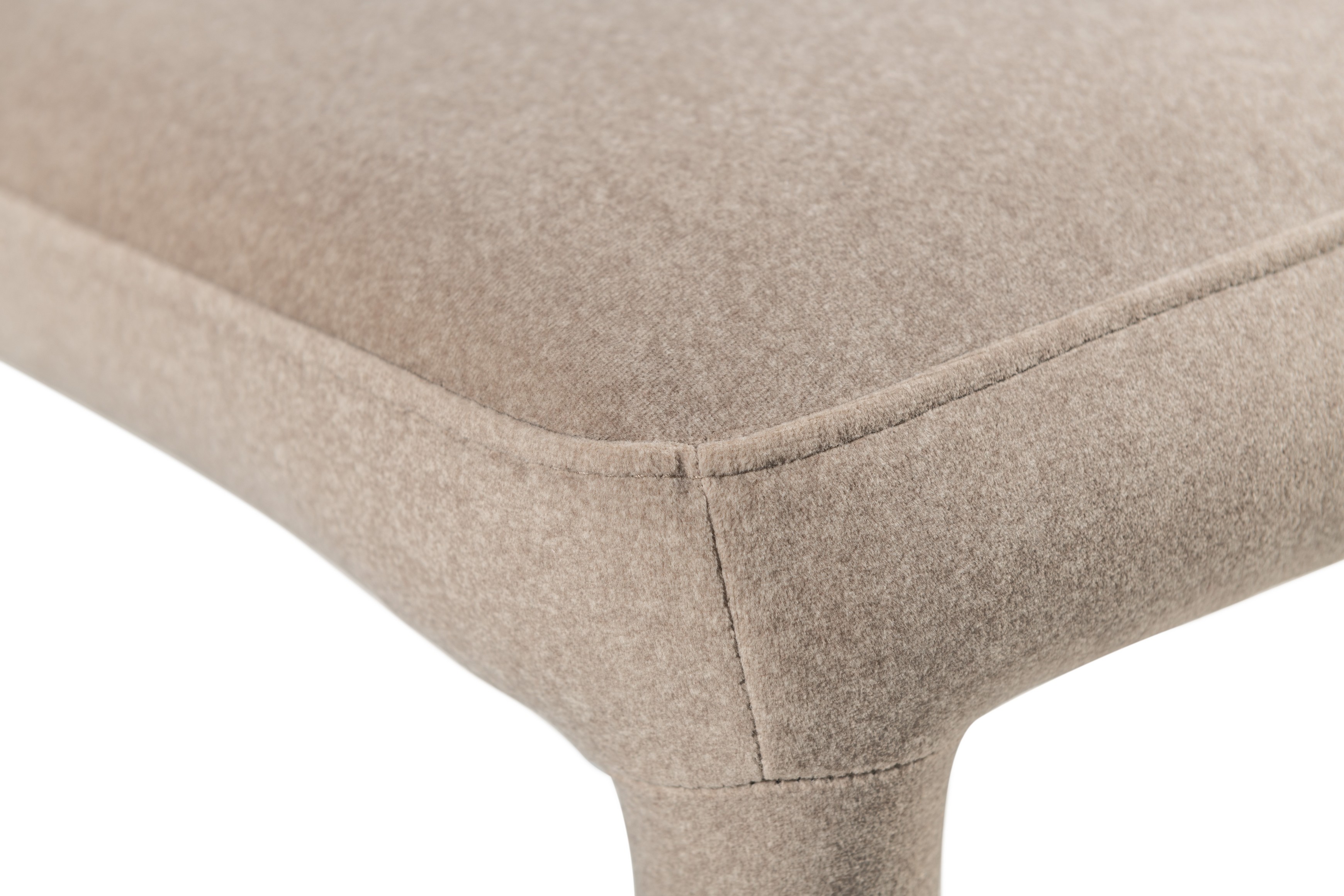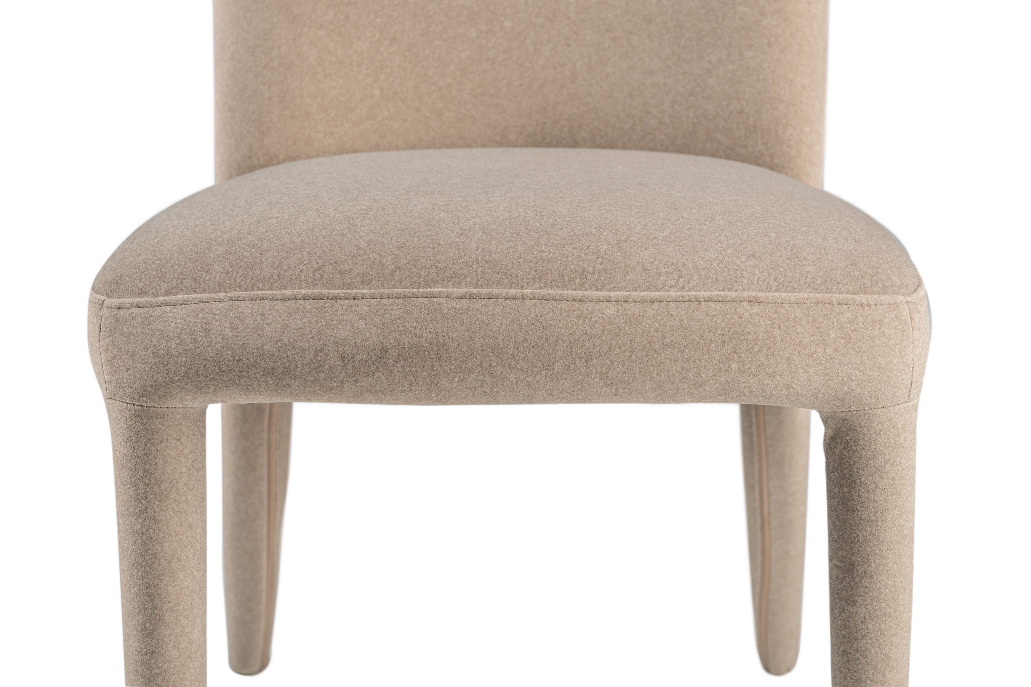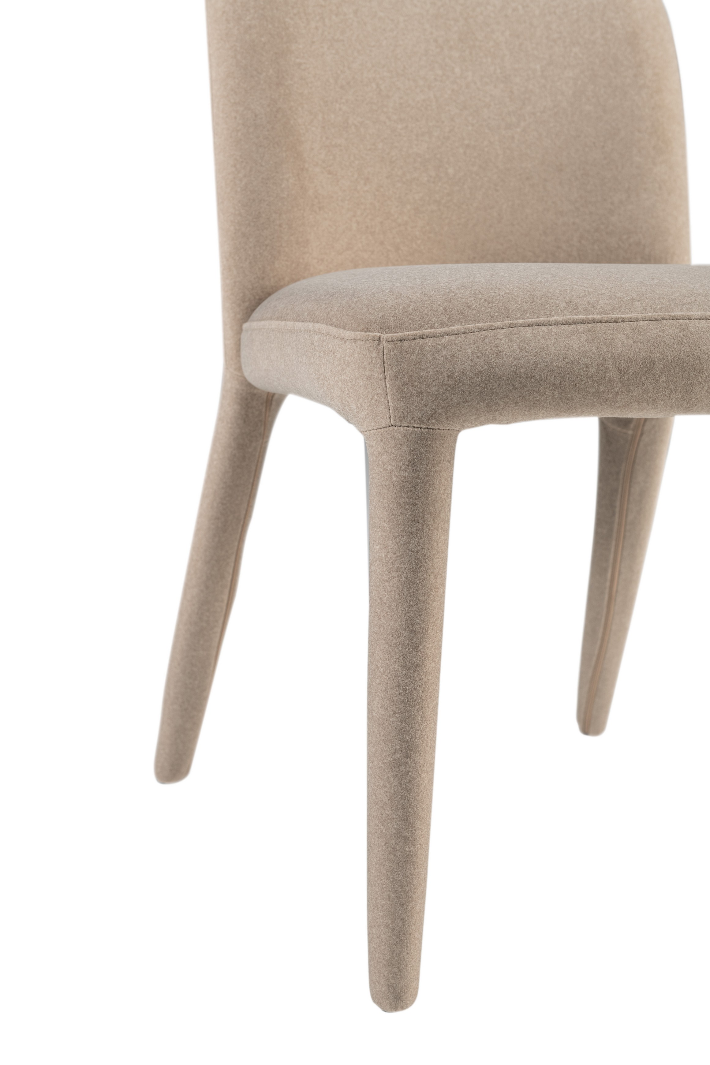 Оббивка стільця виконана з м’якого та розкішного мохеру кольору "макадамія". Цей теплий і приємний відтінок створює відчуття затишку та гармонії, додаючи приміщенню елегантного вигляду. Мохер, відомий своєю довговічністю, стійкістю до зносу та приємною текстурою, дарує максимальний комфорт під час сидіння.
