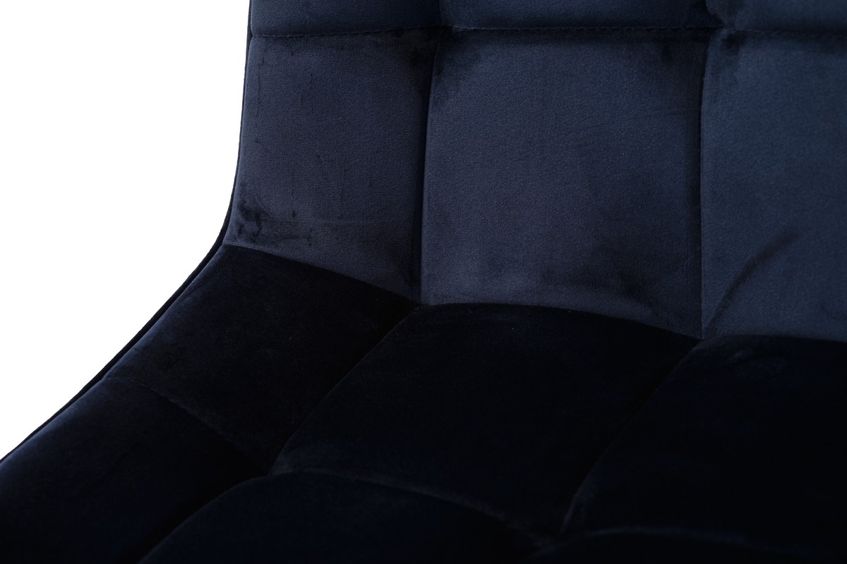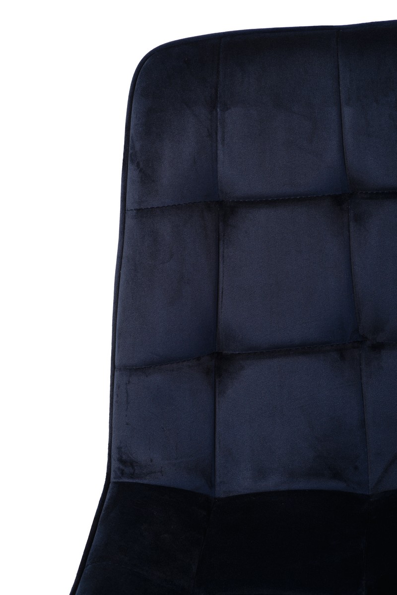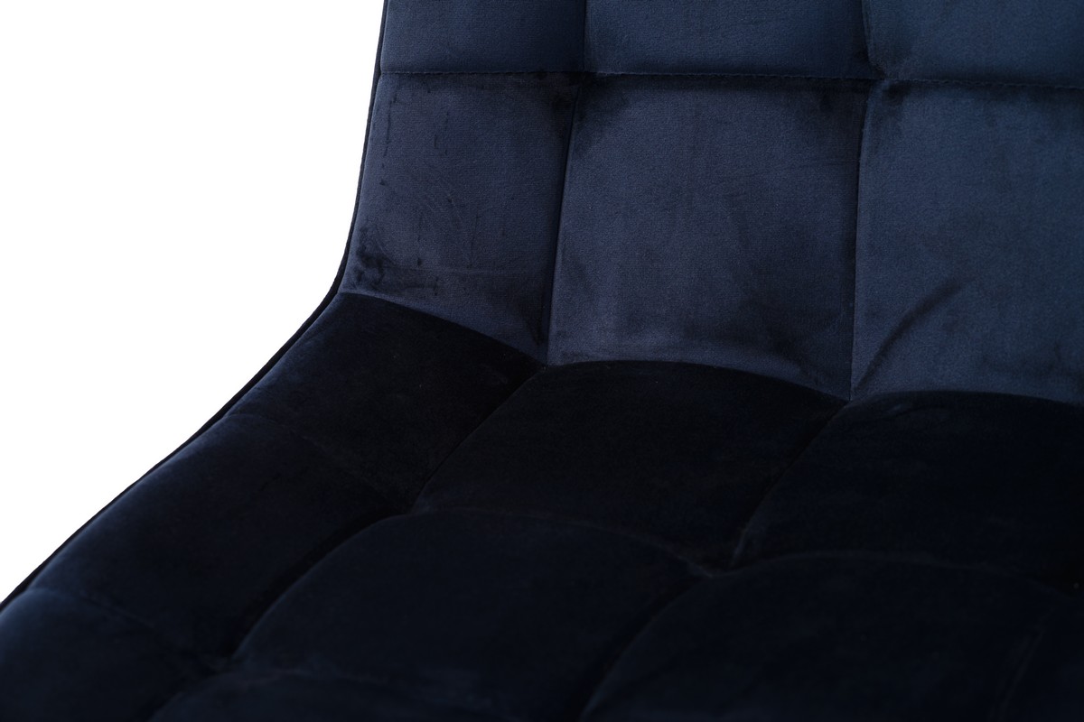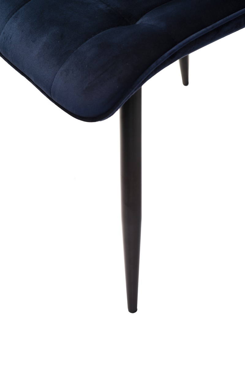 Стілець N-46 у чорнильно-синьому велюрі з чорною металевою основою — це вираз елегантності та розкоші в сучасному дизайні. Глибокий, насичений колір велюру нагадує темне синє море вночі, створюючи атмосферу спокою і стилю. М’яка текстура велюрової оббивки додає стільцю преміального вигляду, підкреслюючи його вишуканість і елегантність.