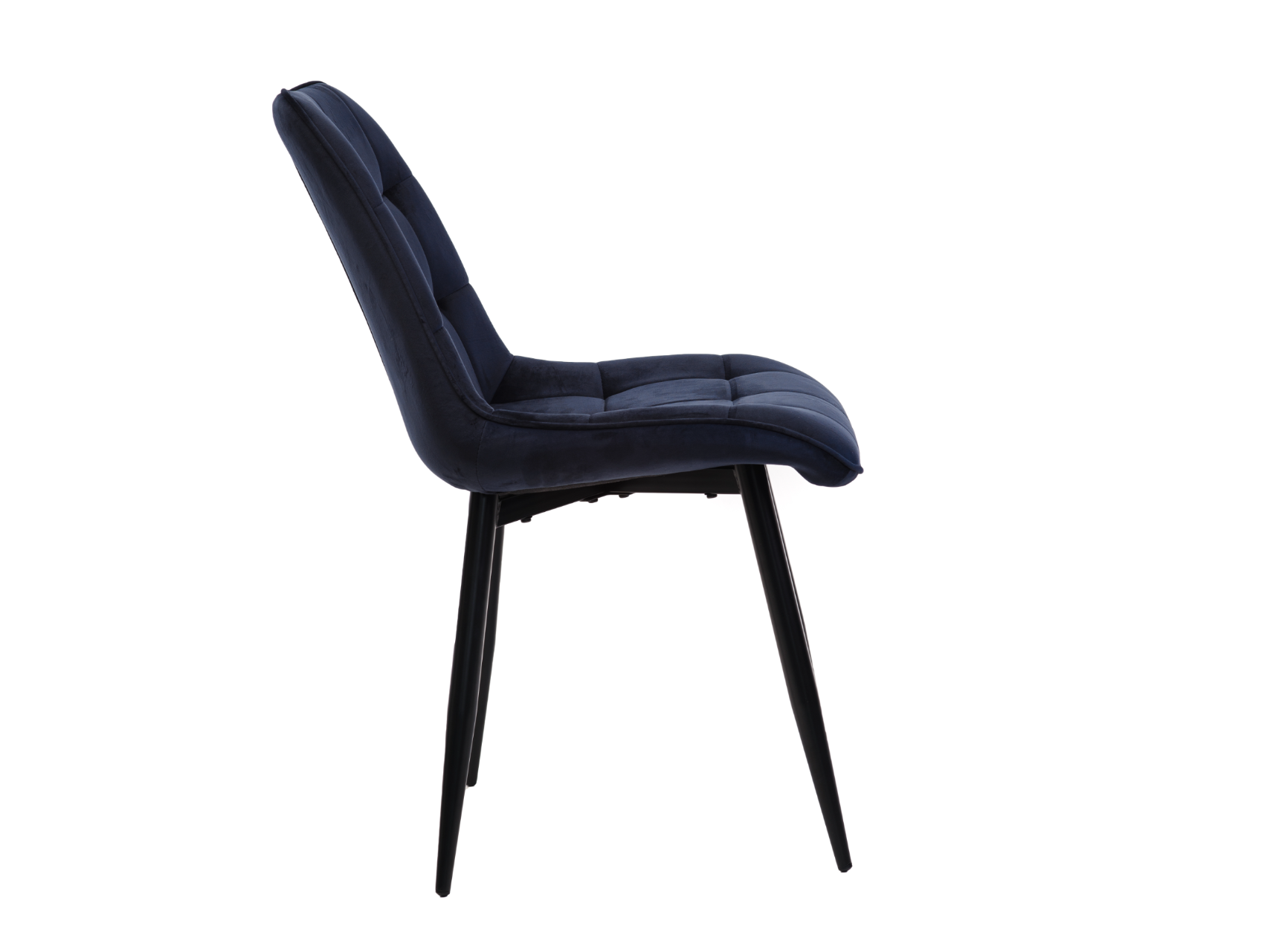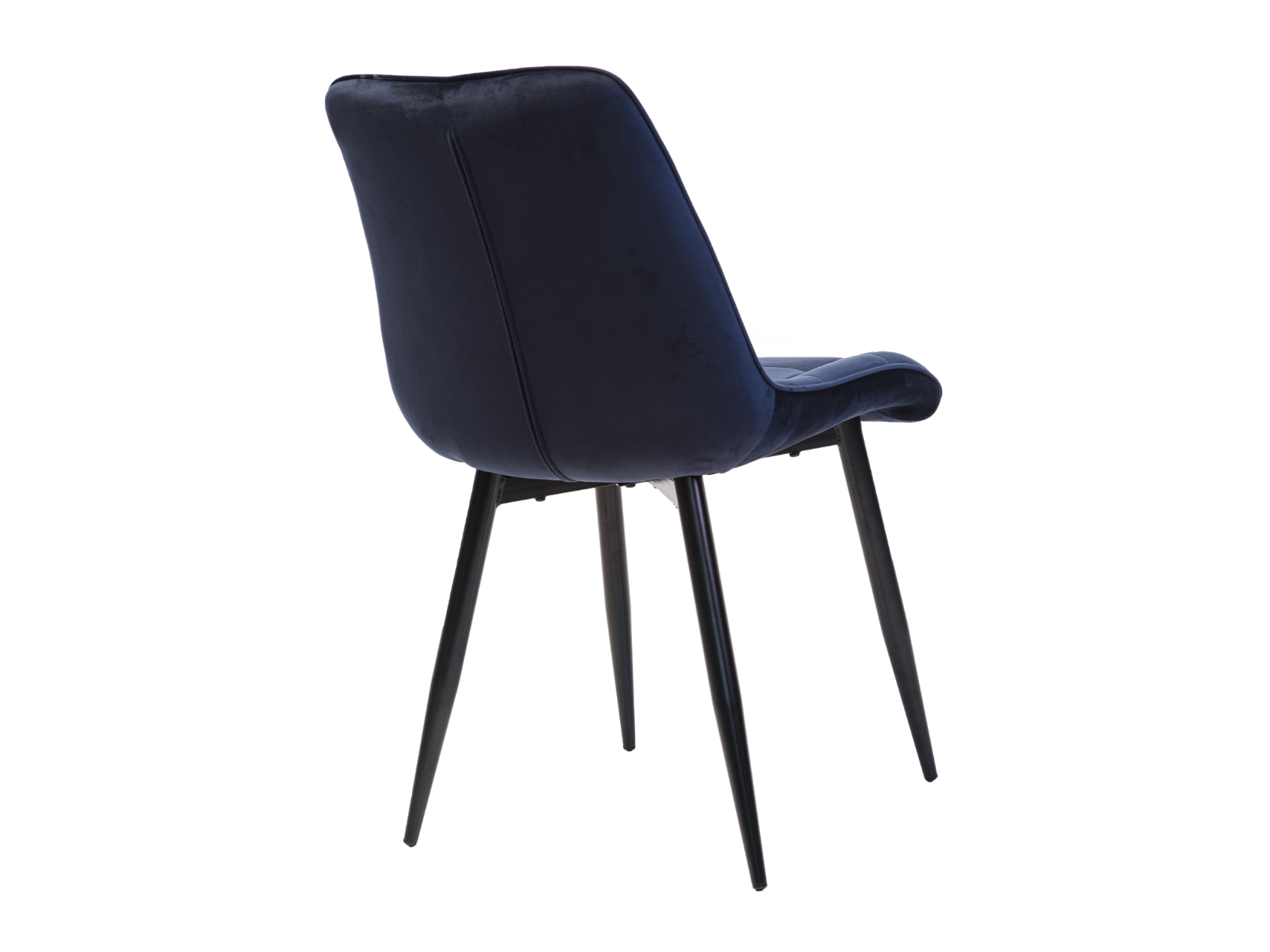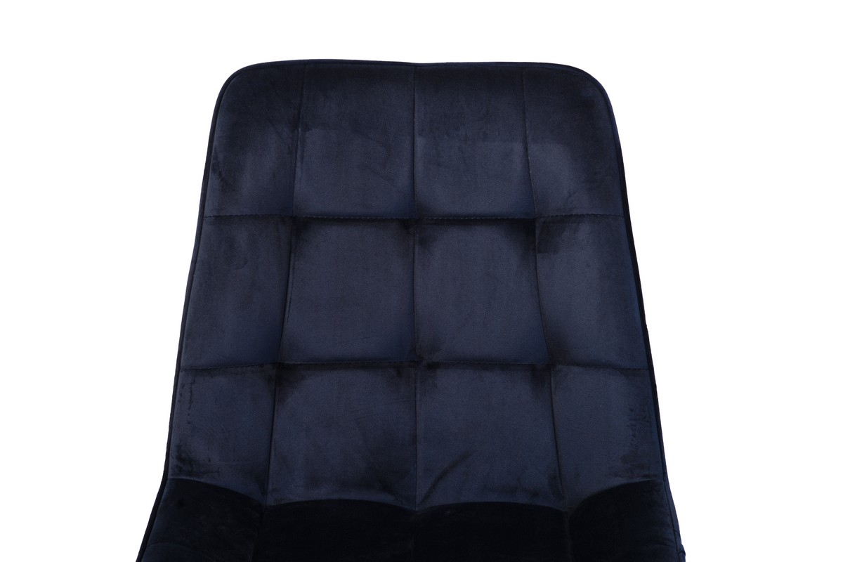 Стілець N-46 у чорнильно-синьому велюрі з чорною металевою основою — це вираз елегантності та розкоші в сучасному дизайні. Глибокий, насичений колір велюру нагадує темне синє море вночі, створюючи атмосферу спокою і стилю. М’яка текстура велюрової оббивки додає стільцю преміального вигляду, підкреслюючи його вишуканість і елегантність.