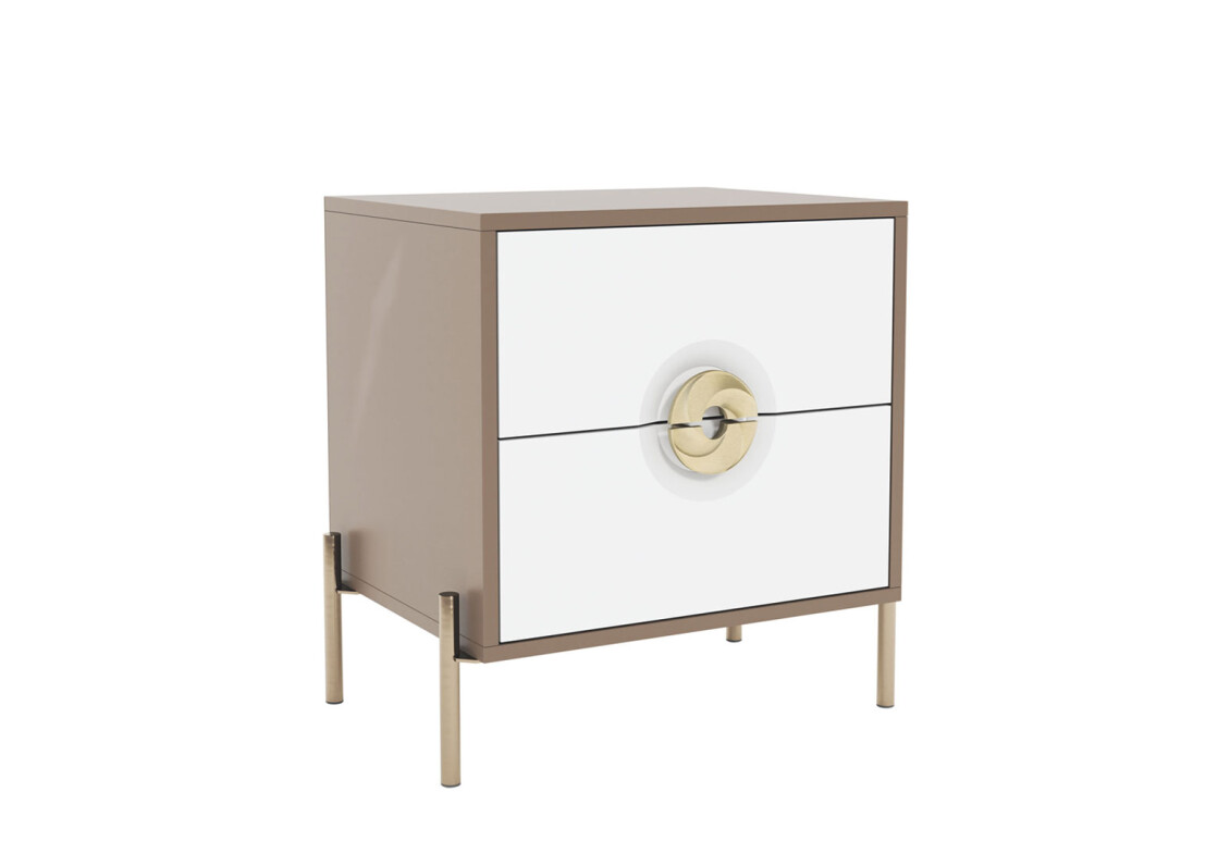Тумба приліжкова Фуріоза з 2 шухлядами 50 см, Глиняний сірий, лак / Білий шовк 1
