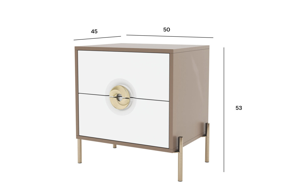 Тумба приліжкова Фуріоза з 2 шухлядами 50 см, Глиняний сірий, лак / Білий шовк