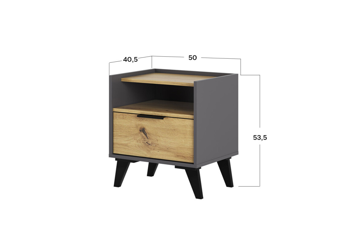 Тумба приліжкова Каміла з 1 шухлядою та полицею 50 см, дуб артизан, графіт / графіт 1